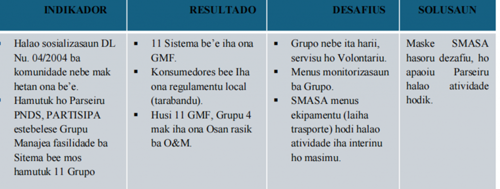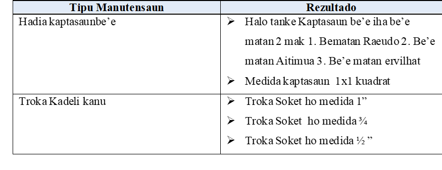 Komunidade bele halao Operasaun Manutensau rasik ba Sistema be’e nebe iha ona.