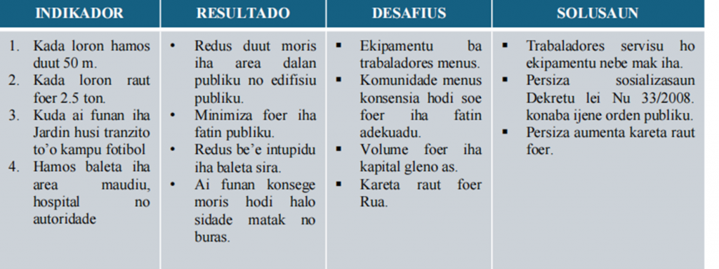 - Realiza asoens atu extinsaun ratos iha sistema drenajen no tratamentu bee moos no moskitu iha área palustres.
