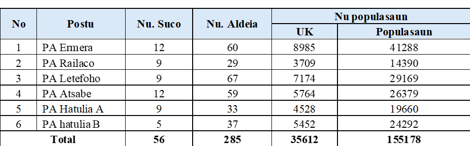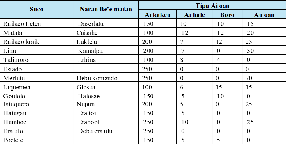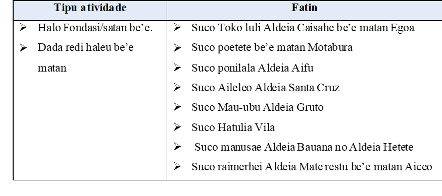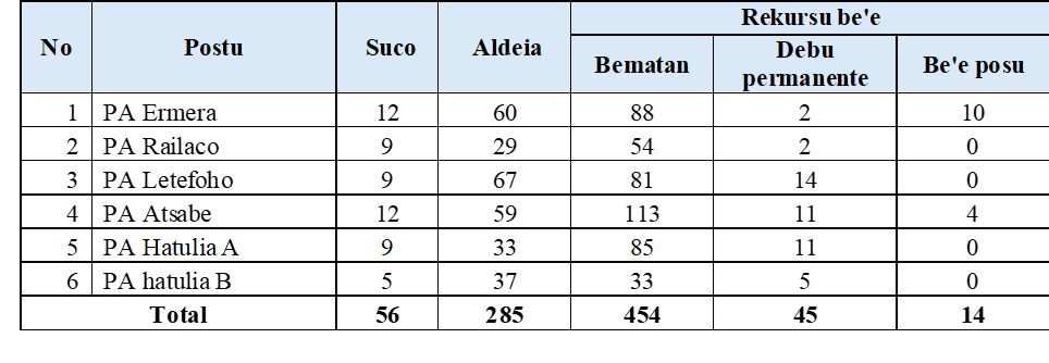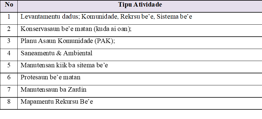 - Levantamentu dadus; Komunidade, Rekrsu be’e, Sistema be’e