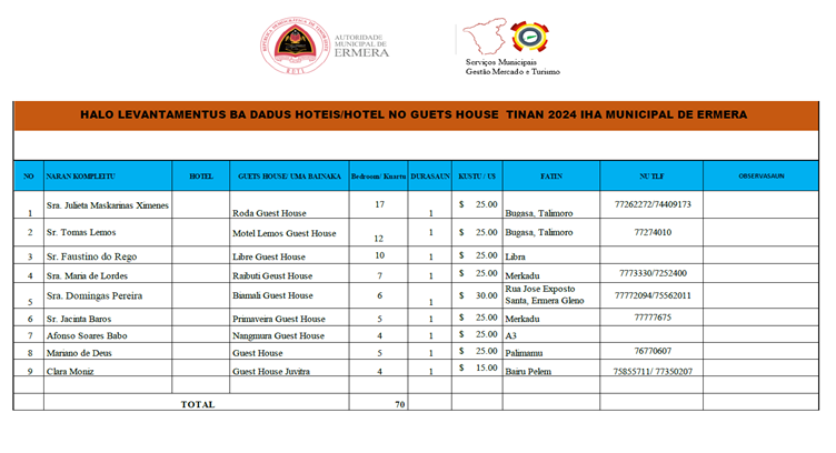 LISTA GUETS HOUSE/ UMA BAINAKA IHA KAPITAL GLENO ERMERA