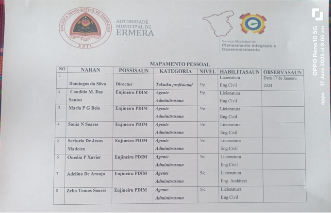 C.  Mapa Pessoal Diresaun Servisu Munisipal Planeamentu Dezenvolvimentu Integradum Munisipal (PDIM).